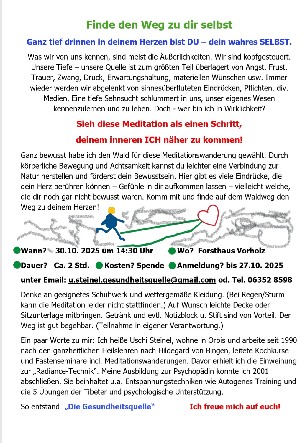 Meditationswanderung mit Uschi Steinel | Aktuelle Nachrichten und Informationen